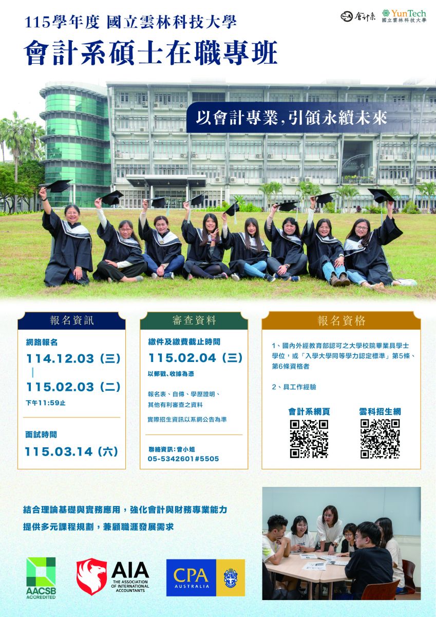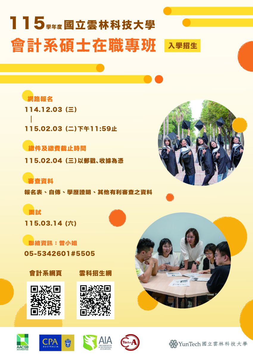 - 簡章下載暨報名網址:https://examweb.yuntech.edu.tw/WebExams/Exam_W/