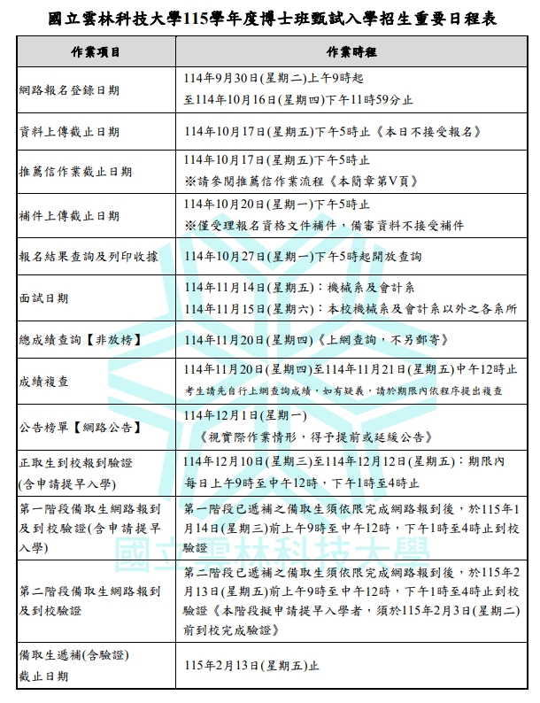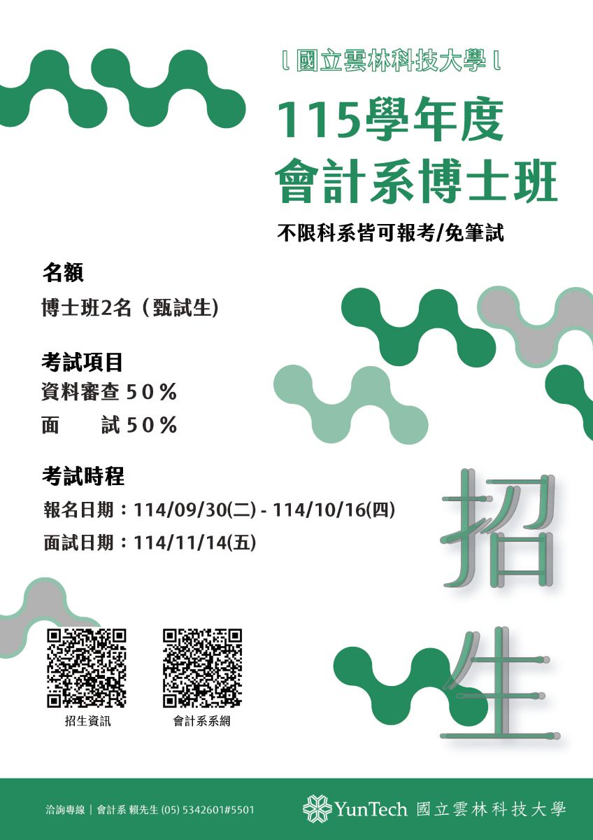 【公告】115學年度博士班甄試入學招生簡章,歡迎踴躍報考~~