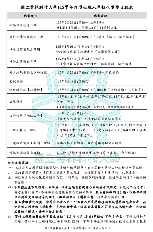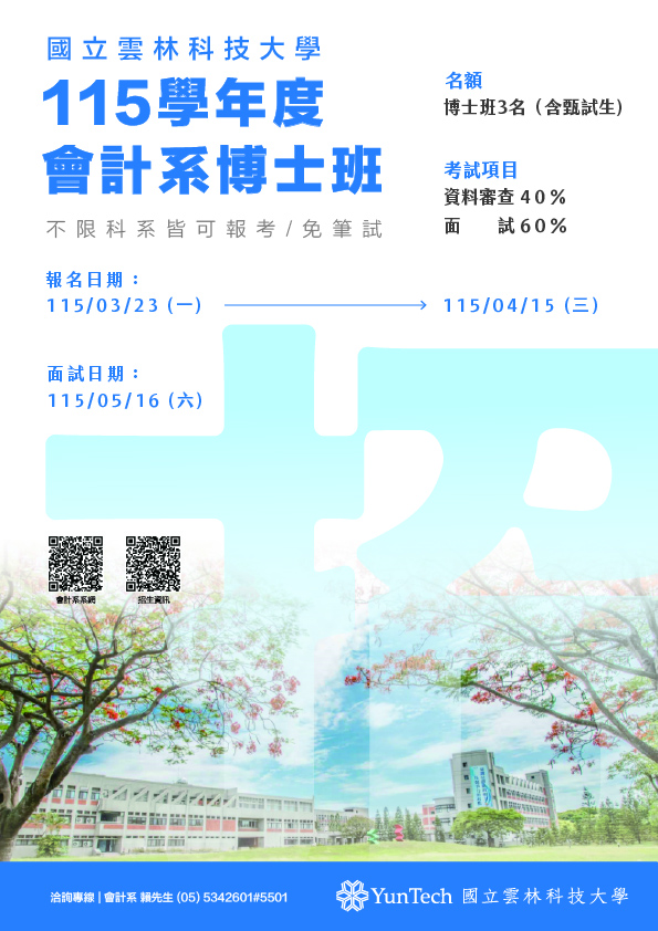 【公告】115學年度博士班一般生入學招生簡章,歡迎踴躍報考~~